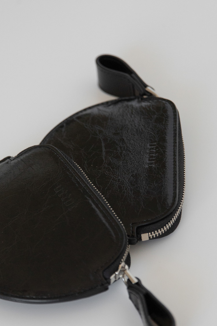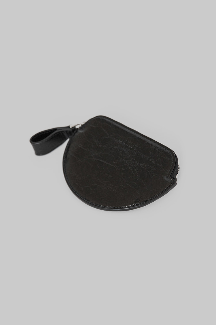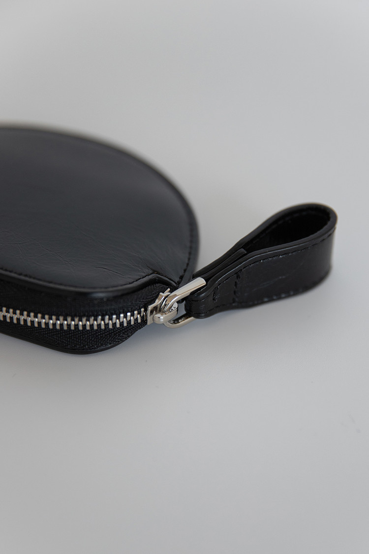 카드 모양을 따른 일반적인 사각형의 지갑이 아닌, 사각형을 원으로 깎아 만든 형태의 디자인.